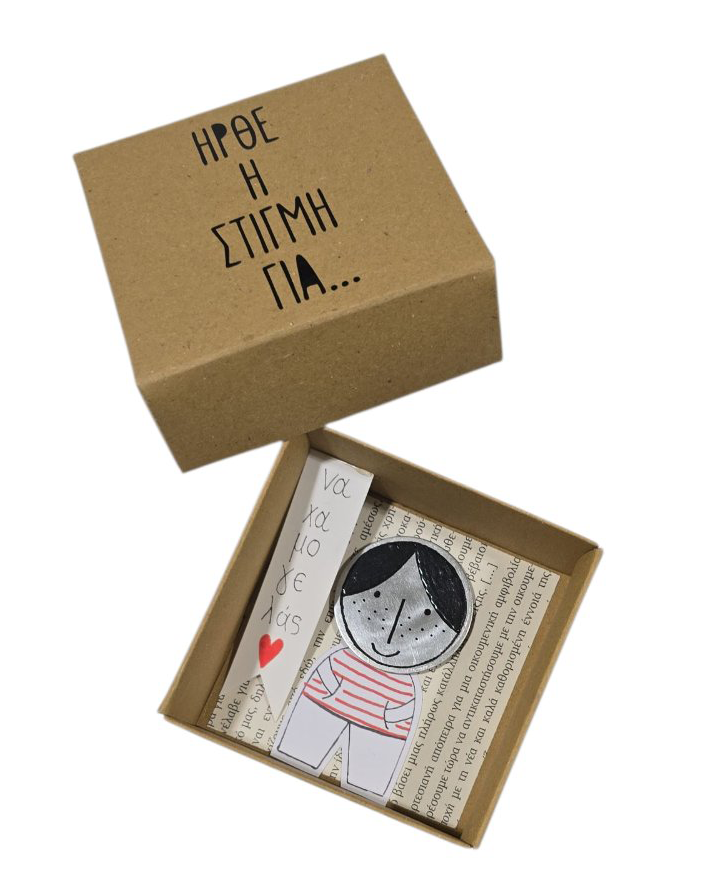 Χάρτινο κουτί με ανθρωπάκι και ευχή…”Να χαμογελας”