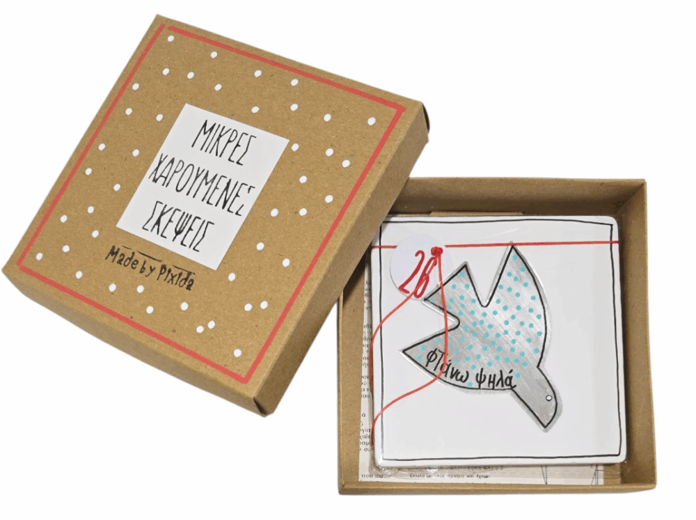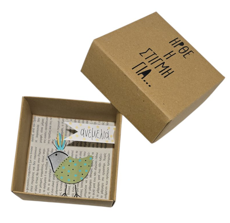 Χάρτινο κουτί με πουλάκι και ευχή…”Ανεμελιά”
