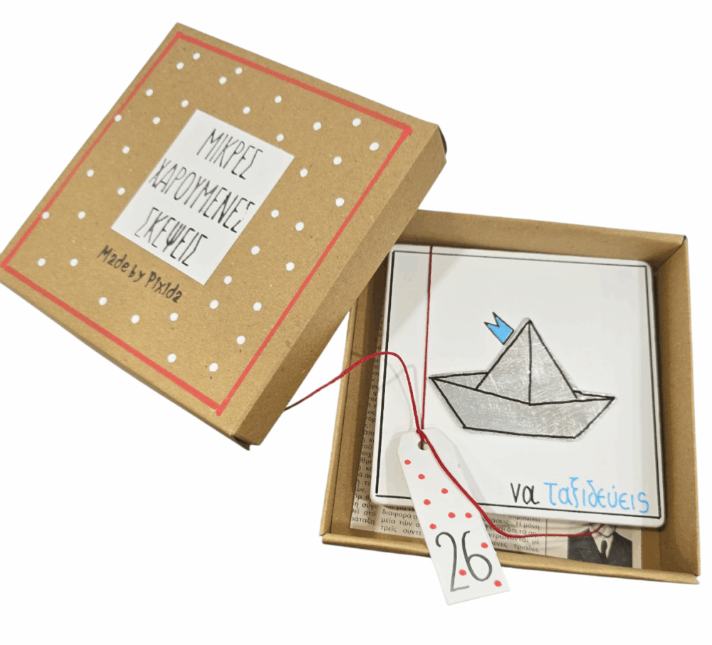 Χάρτινο κουτί με καράβι και ευχή…”Να ταξιδεύεις”
