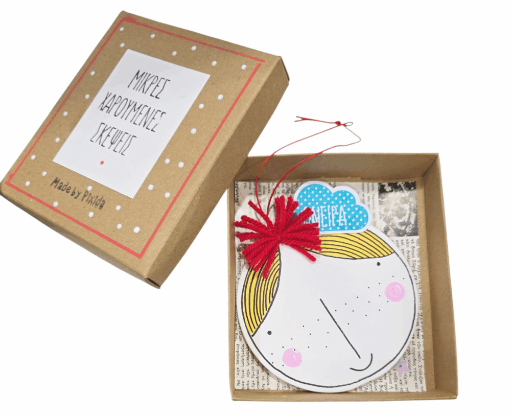 Χάρτινο κουτί με ξύλινο πρόσωπο και ευχή…”Όνειρα”