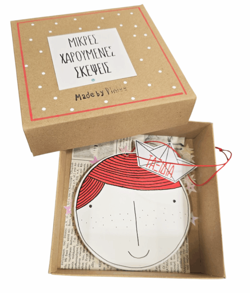 - Χάρτινο κουτί με καραβάκι και ευχή..''Να μη σε ματιάσουν''' από τον Προκόπη από το κέντρο "ΠΥΞΙΔΑ". Χάρτινο κουτί με γούρι αλουμινίου και ευχή , ζωγραφισμένο εξωτερικά στο χέρι. Διαστάσεις κουτιού: 8 Χ 8 εκ. *Ενδέχεται να υπάρχουν διαφοροποιήσεις χρωματικά στα αντικέιμενα λόγο του ότι είναι χειροποίητα