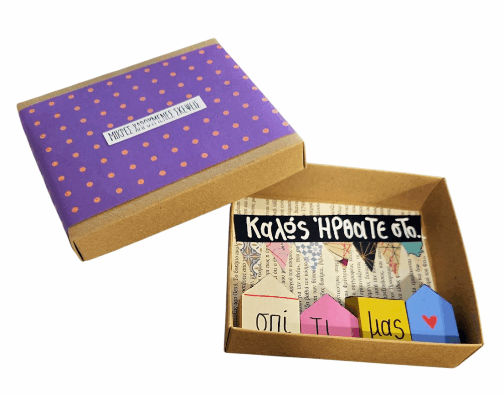 Χάρτινο κουτί με σπιτάκια και ευχή…”Καλώς ήρθατε στο σπίτι μας”