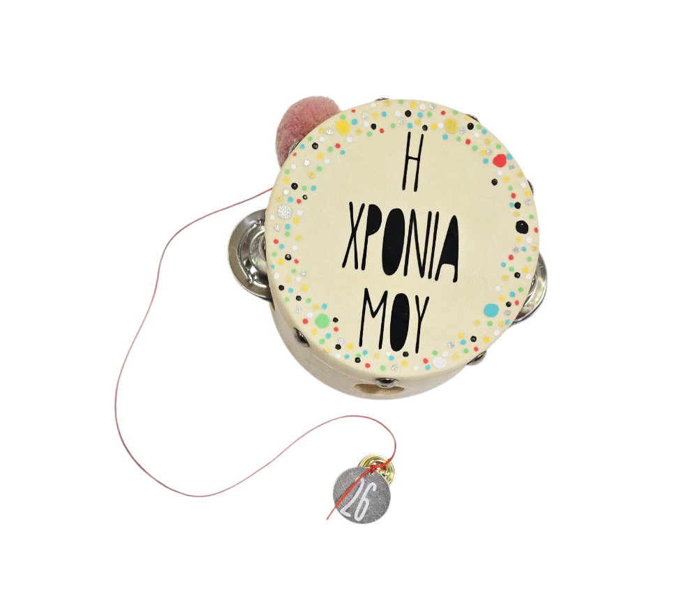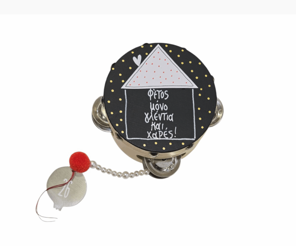 - Ντέφι με ευχή ζωγραφισμένο στο χέρι με γούρι του 26΄' Από την Ασημίνα από το κέντρο “ΠΥΞΙΔΑ”. Διαστάσεις:10 Χ 5 εκ.