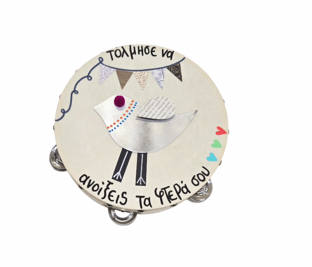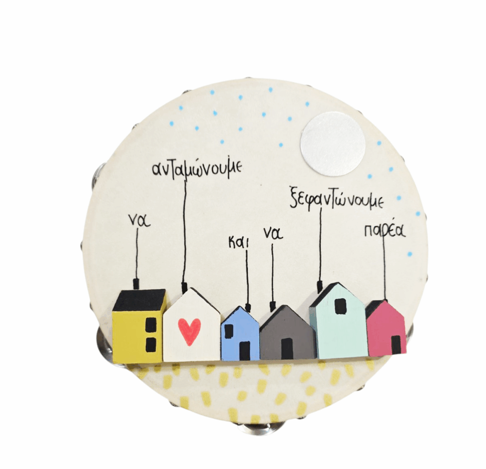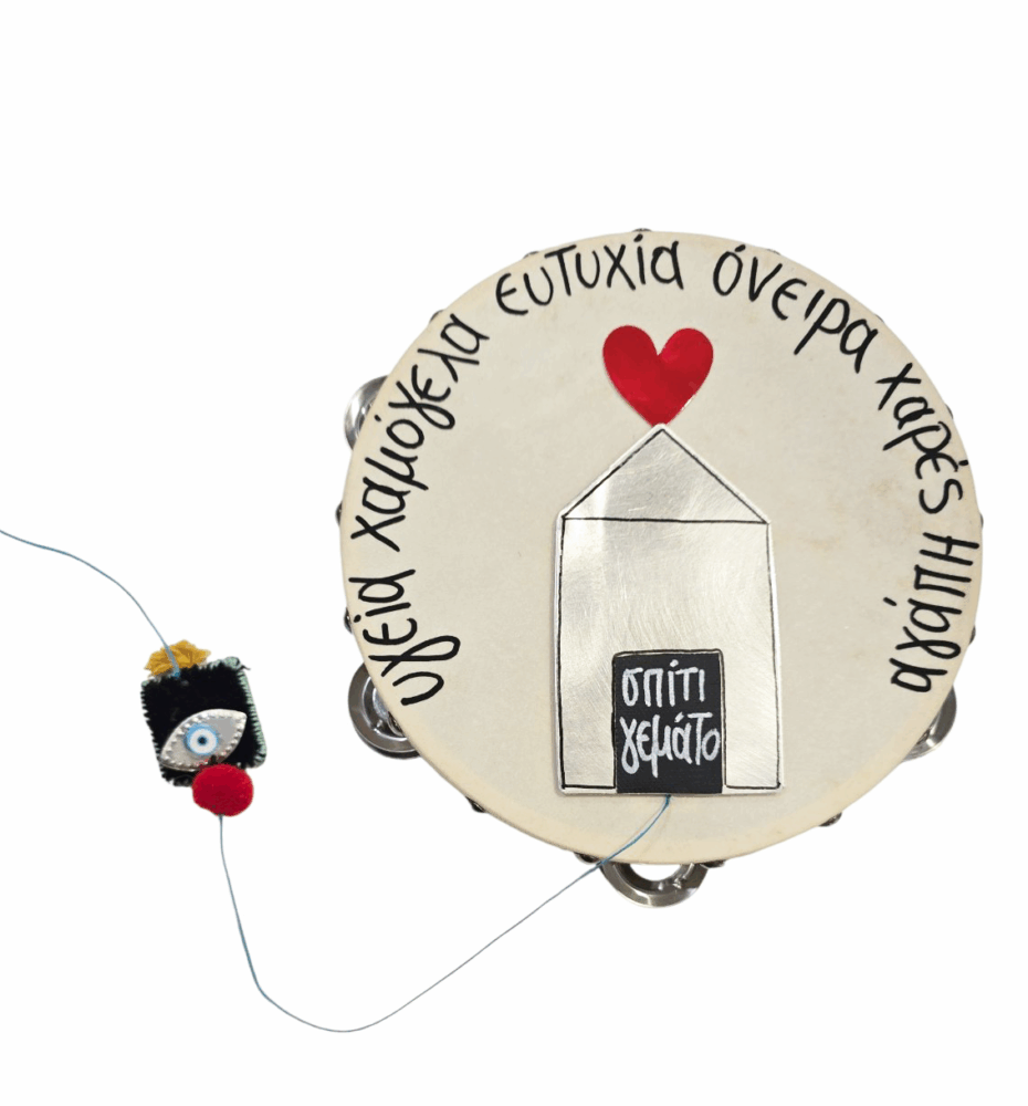- Ντέφι με ευχή και φυλαχτό ζωγραφισμένο στο χέρι από τον Τάσο από το κέντρο “ΠΥΞΙΔΑ”. Διαστάσεις: 19 Χ 5 εκ.