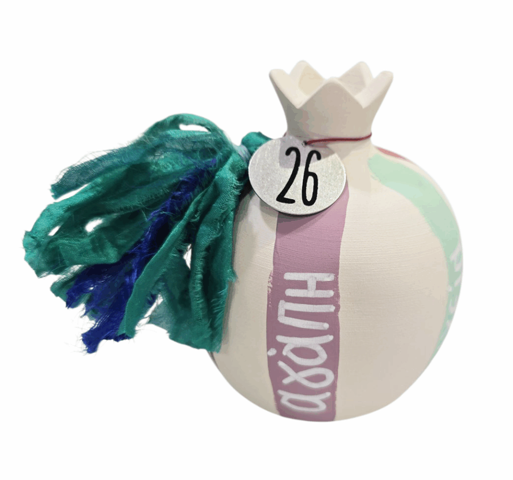 - Κρεμαστό τάμα ρόδι..''Καλοσύνη'' από την Πίτσα από το κέντρο "ΠΥΞΙΔΑ". Κρεμαστό τάμα , ζωγραφισμένο εξωτερικά στο χέρι. Διαστάσεις: 30 x 7 εκ. *Ενδέχεται να υπάρχουν διαφοροποιήσεις χρωματικά στα αντικέιμενα λόγο του ότι είναι χειροποίητα