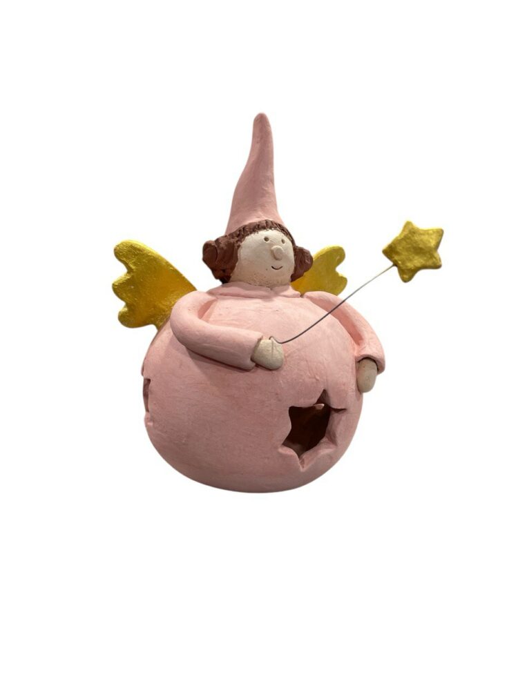 Νεράιδα-Φαναράκι ροζ με αστέρι κεραμική