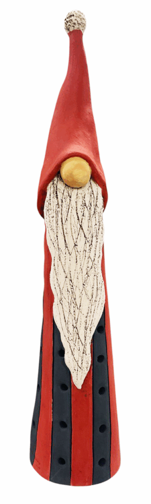 - Χειροποίητο κεραμικό Ξωτικό από πηλό Stoneware σε μαύρο - κόκκινο χρώμα, με κόκκινο σκούφο, ζωγραφισμένο εξωτερικά στο χέρι. Ένα πρωτότυπο δωράκι παραμυθένιας αισθητικής, ιδανικό και για δωράκι Χριστουγέννων. Διατάσεις: 10 Χ 45 εκ.