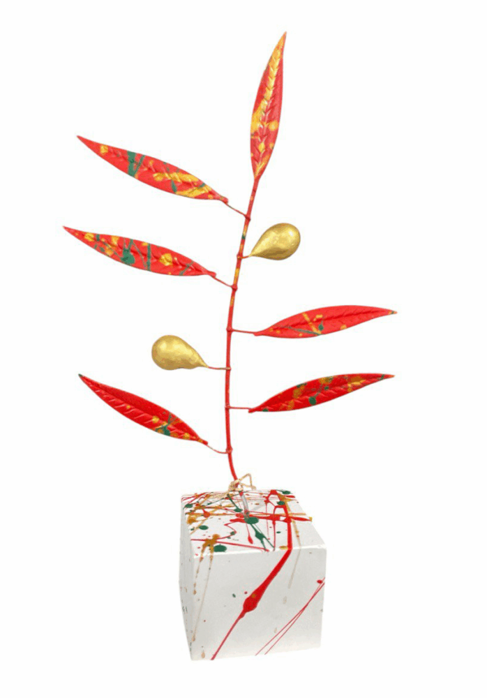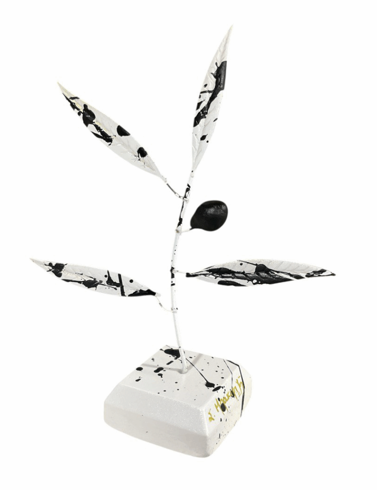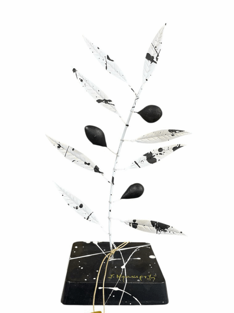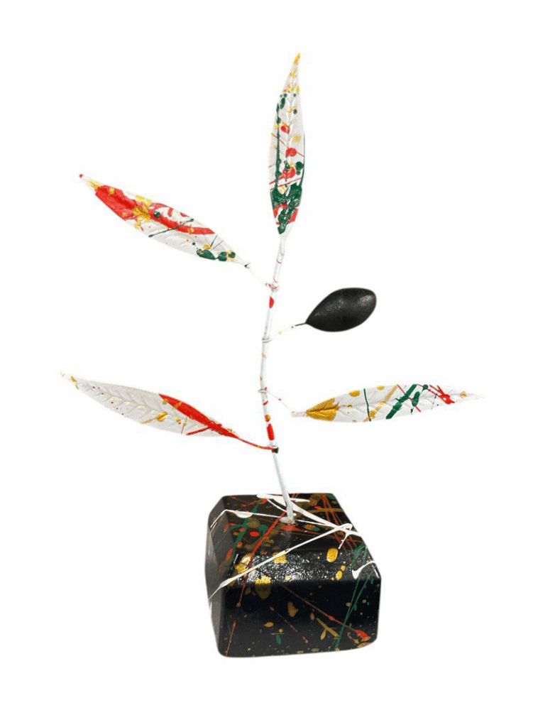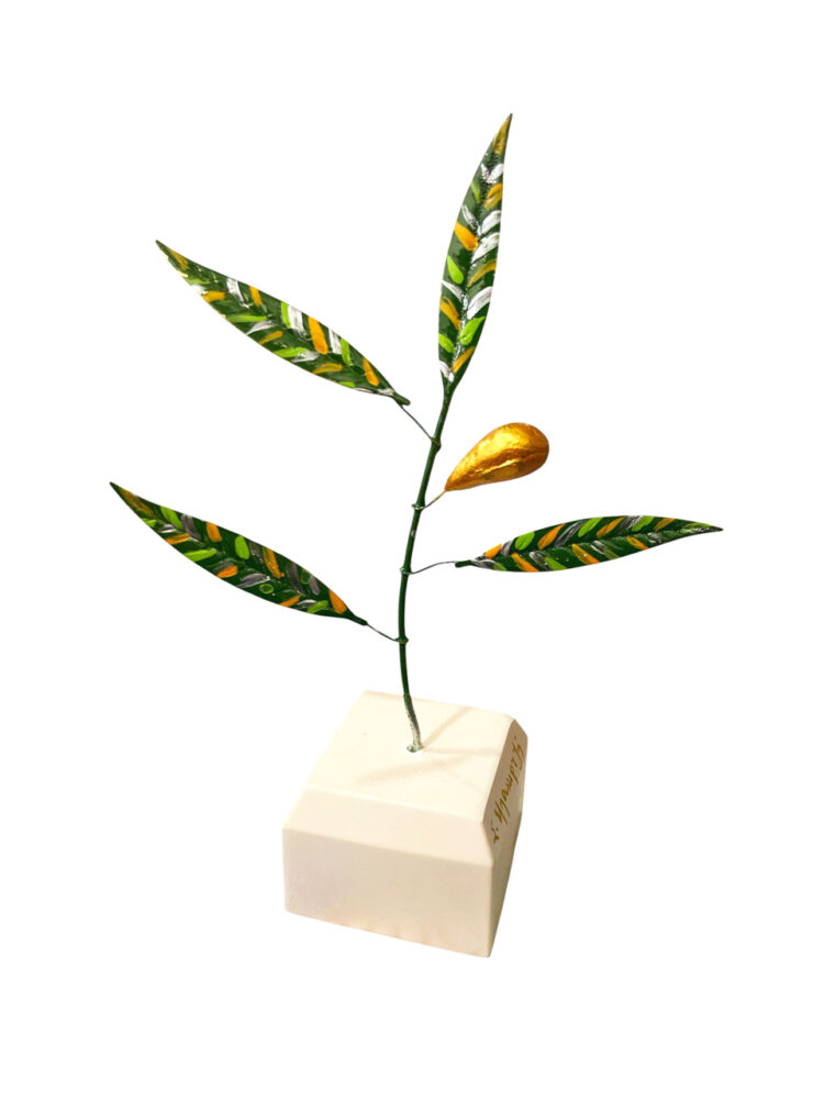 - Χειροποίητο μεταλλικό δέντρο ελιάς πολύχρωμο της Σοφίας Μπακιρτζή με πλεγμένο μεταλλικό κορμό σε σπιράλ και κεραμικούς καρπούς ελιάς, σε βάση από επεξεργασία ριτίνης. Διαστάσεις ελιάς: 12 x 20 εκ. Διαστάσεις βάσης: 5 x 5 εκ. H ελιά είναι σύμβολο ειρήνης και σοφίας, αθανασίας και ευφορίας, γαλήνης, προστασίας και γονιμότητας. Δέντρο του καλού συνδεδεμένο με την αναγέννηση και το φως. Ένα εντυπωσιακό, συμβολικό δώρο με εξαιρετικές λεπτομέρειες και μοντέρνα αισθητική.
