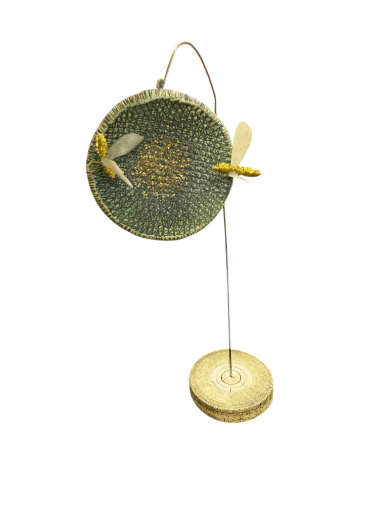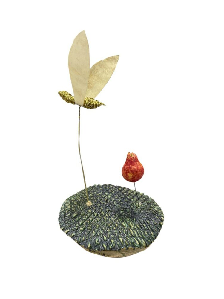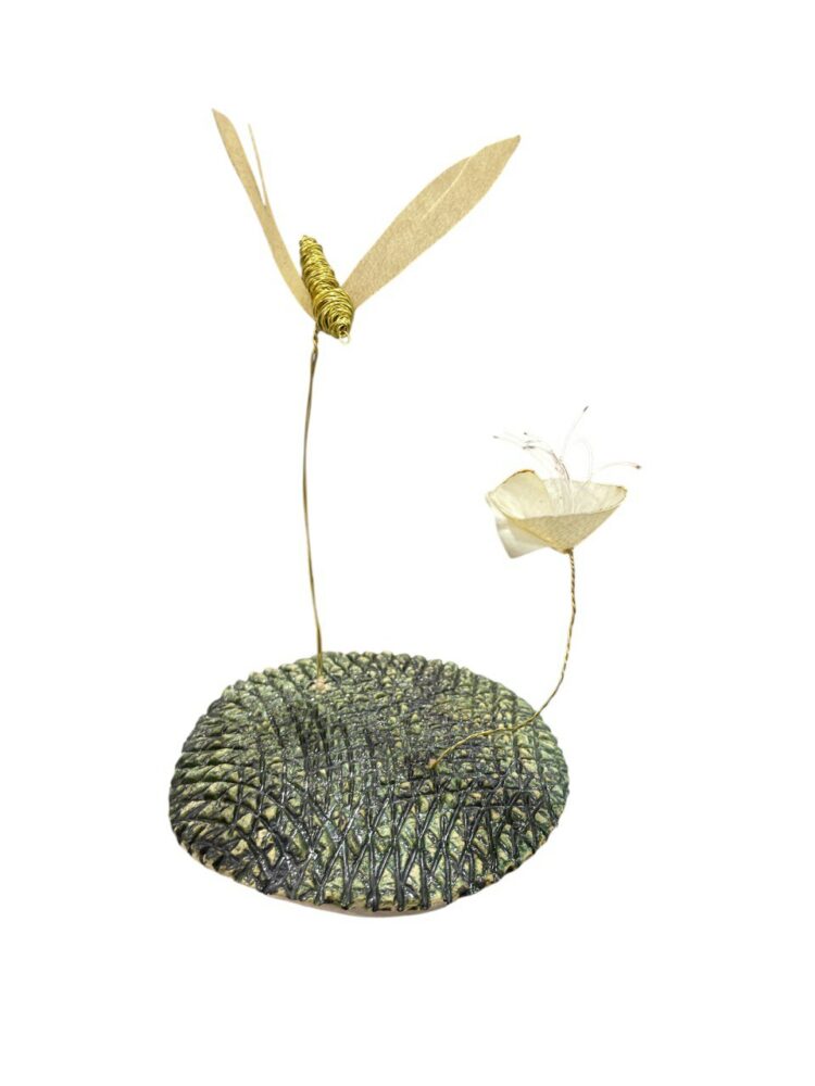- Κεραμικό χειροποίητο επιτραπέζιο διακοσμητικό με βάση, με διακοσμητικά μεταλλικά στοιχεία μέλισσες. Μια ξεχωριστή δημιουργία βασισμένη σε πρωτότυπα σχέδια. Διαστάσεις: 10 x 10 x 14,5 εκ .