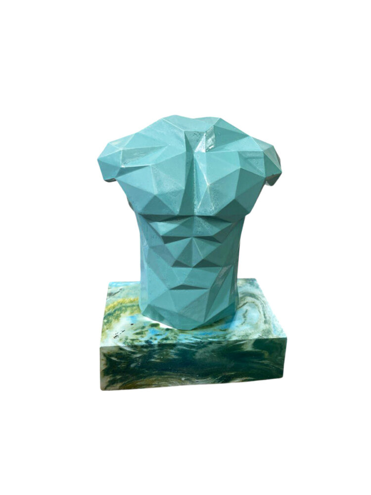 - Χειροποίητο κεραμικό αγαλματίδιο Απολλώνιο σώμα , τιρκουάζ επιζωγραφισμένο στο χέρι. Διαστάσεις: 7,5 x 7,5 x 11 εκ.
