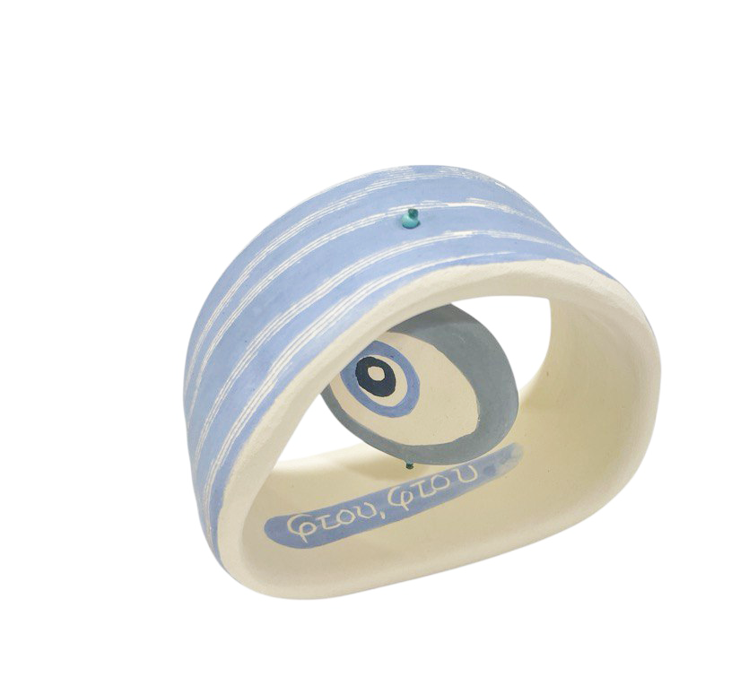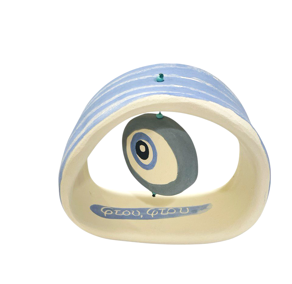 - Χειροποίητo κεραμικό γούρι σε stand με ευχή : ΄΄ φτου,φτου΄΄ κατασκευασμένο και ζωγραφισμένο εξωτερικά στο χέρι. Διαστάσεις: 8,5 x 5 x 8,5 εκ.