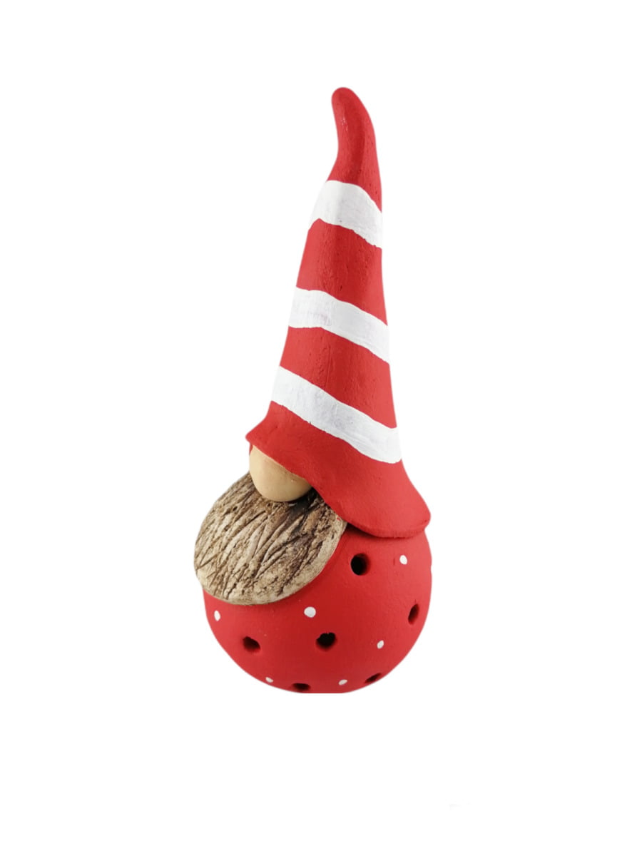 Χειροποίητο κεραμικό Ξωτικό ρεσώ από πηλό Stoneware σε κόκκινο χρώμα, με λευκό και κόκκινο ριγέ σκούφο, ζωγραφισμένο εξωτερικά στο χέρι.