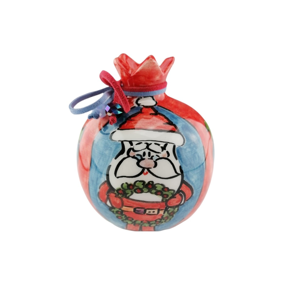 SKU: EART1180Handmade ceramic decorative pomegranate, hand painted outside, with Santa Claus and mistletoe pattern.