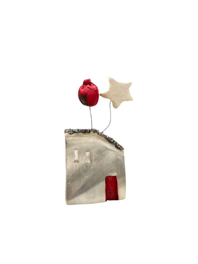 Κεραμικό διακοσμητικό με σπιτάκια με ρόδια και καρδιά με φοβερές λεπτομέρειες επιζωγραφισμένο στο χέρι.