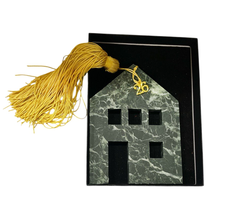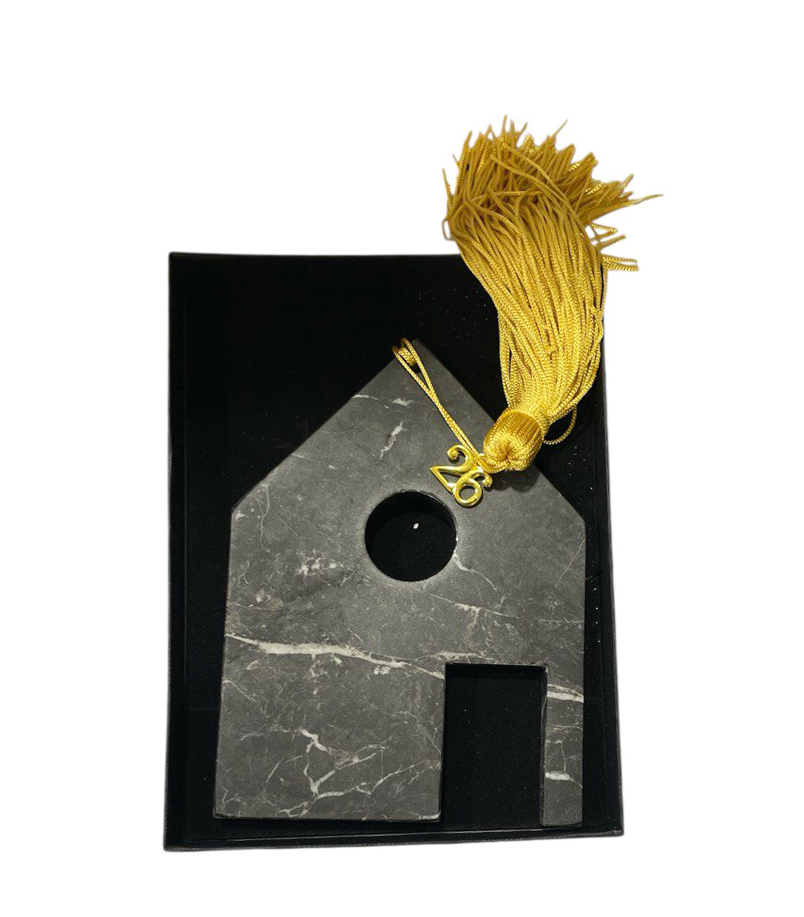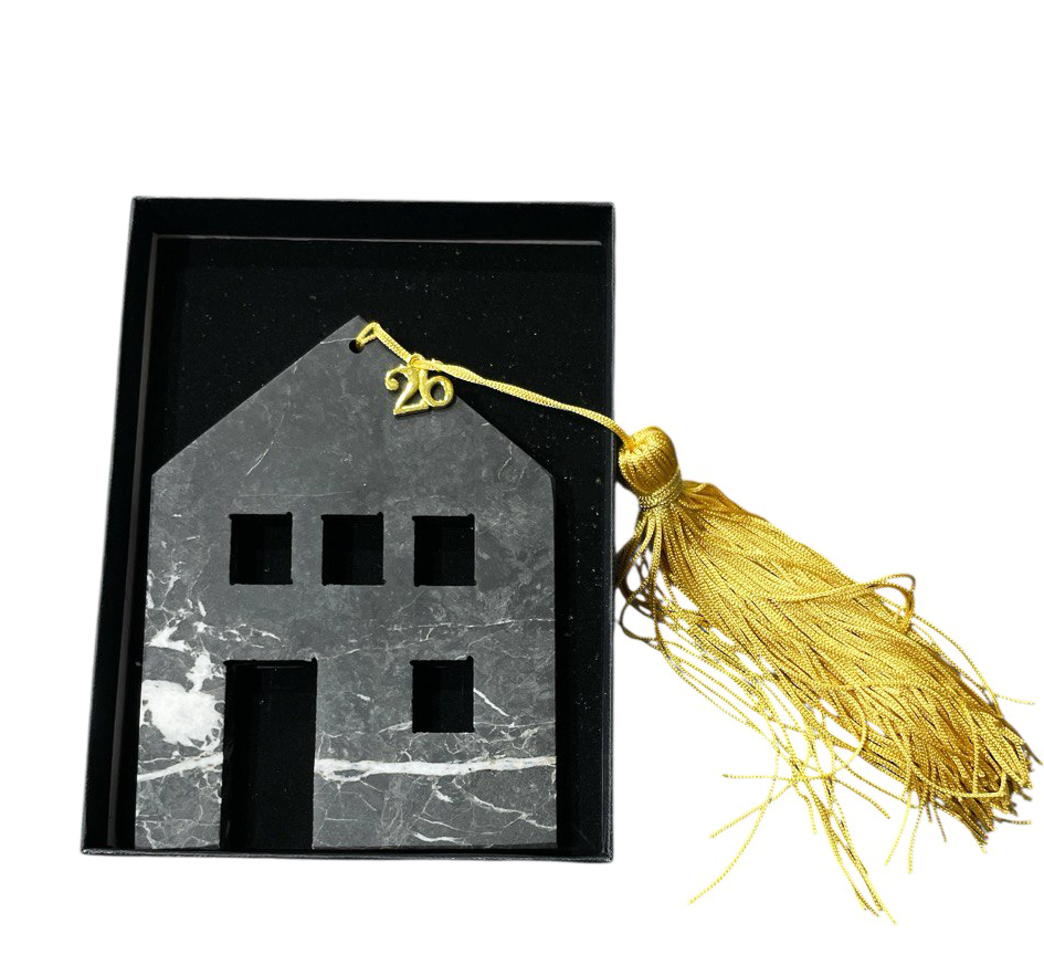 - Χειροποίητο μαρμάρινο διακοσμητικό μαύρο, σε σχήμα σπιτιού με γούρι του 26΄. Ένα ξεχωριστό διακοσμητικό, αποτελεί μια μοντέρνα πρόταση για προσωπικό-εορταστικό δώρο και επαγγελματικό! Διαστάσεις αντικειμένου : 10 x 1 x 13 εκ. Διαστάσεις κουτιού: 12 x 3 x 16 εκ.
