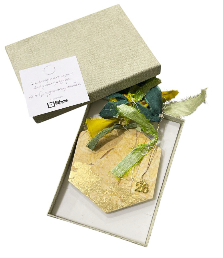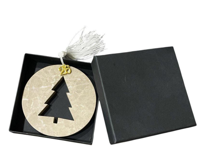 - Χειροποίητο μαρμάρινο διακοσμητικό μπέζ, σε σχήμα δέντρου με γούρι του 26΄. Ένα ξεχωριστό διακοσμητικό, αποτελεί μια μοντέρνα πρόταση για προσωπικό-εορταστικό δώρο και επαγγελματικό! Διάμετρος αντικειμένου : 10 εκ. Διαστάσεις κουτιού: 11 x 3 x 11 εκ.