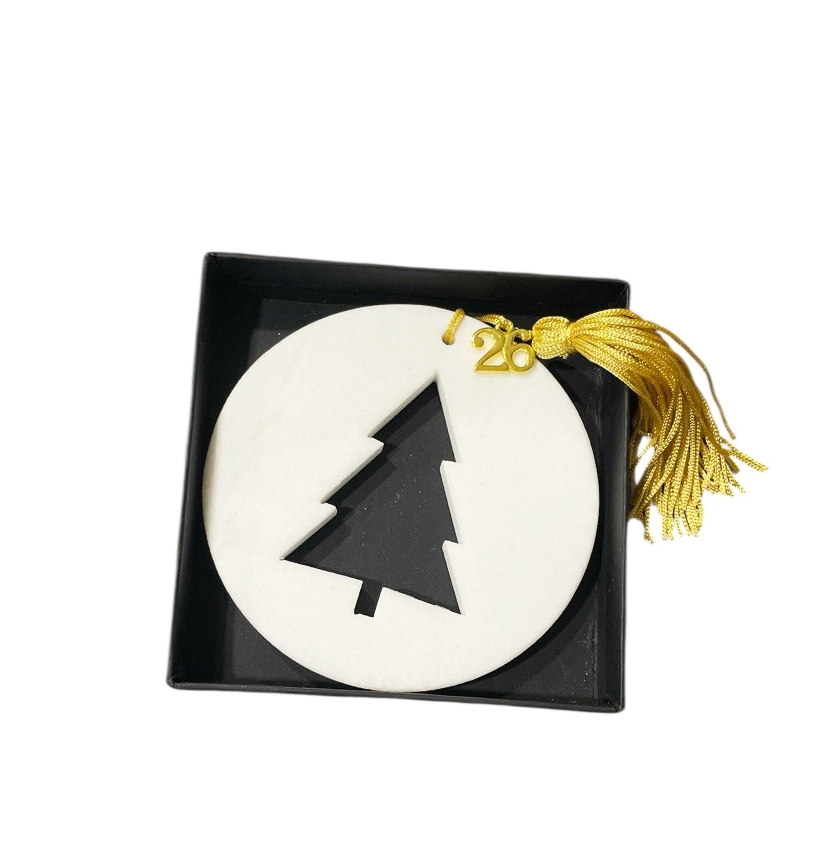 - Χειροποίητο μαρμάρινο διακοσμητικό λευκό, σε σχήμα δέντρου με γούρι του 26΄. Ένα ξεχωριστό διακοσμητικό, αποτελεί μια μοντέρνα πρόταση για προσωπικό-εορταστικό δώρο και επαγγελματικό! Διάμετρος αντικειμένου : 10 εκ. Διαστάσεις κουτιού: 11 x 3 x 11 εκ.