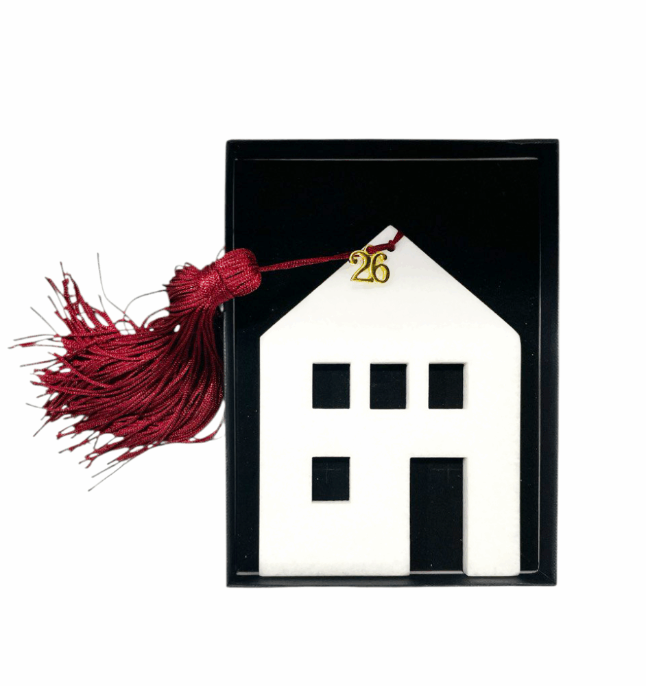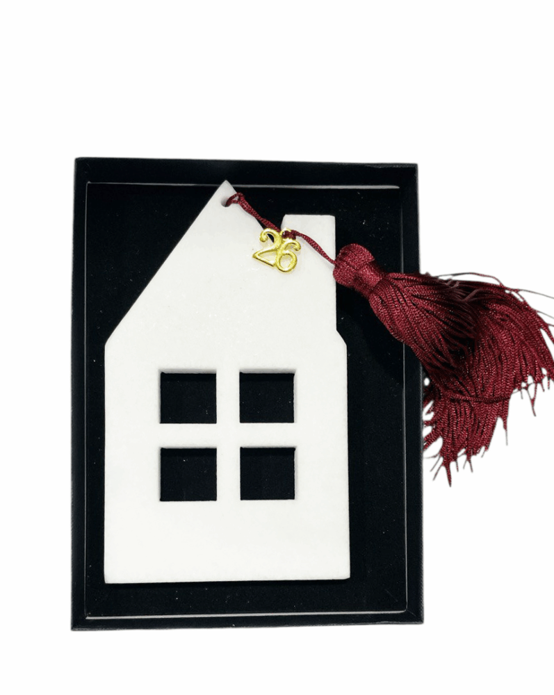 - Χειροποίητο μαρμάρινο διακοσμητικό λευκό, σε σχήμα σπιτιού με γούρι του 26΄. Ένα ξεχωριστό διακοσμητικό, αποτελεί μια μοντέρνα πρόταση για προσωπικό-εορταστικό δώρο και επαγγελματικό! Διαστάσεις αντικειμένου : 10 x 1 x 13 εκ. Διαστάσεις κουτιού: 12 x 3 x 16 εκ.