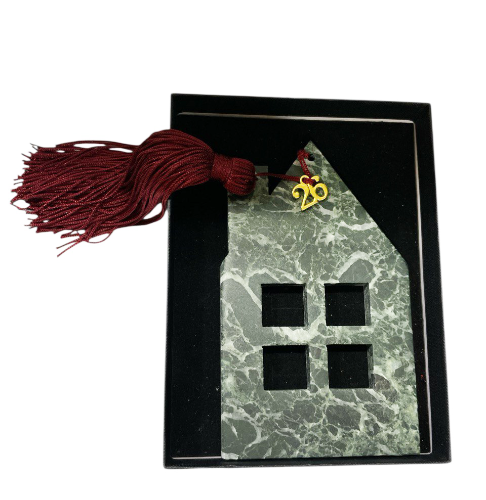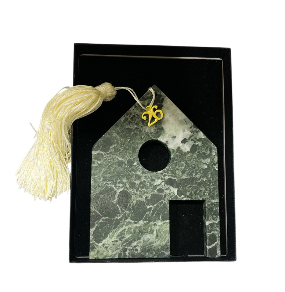 - Χειροποίητο μαρμάρινο διακοσμητικό πράσινο, σε σχήμα σπιτιού με γούρι του 26΄. Ένα ξεχωριστό διακοσμητικό, αποτελεί μια μοντέρνα πρόταση για προσωπικό-εορταστικό δώρο και επαγγελματικό! Διαστάσεις αντικειμένου : 10 x 1 x 13 εκ. Διαστάσεις κουτιού: 12 x 3 x 16 εκ.