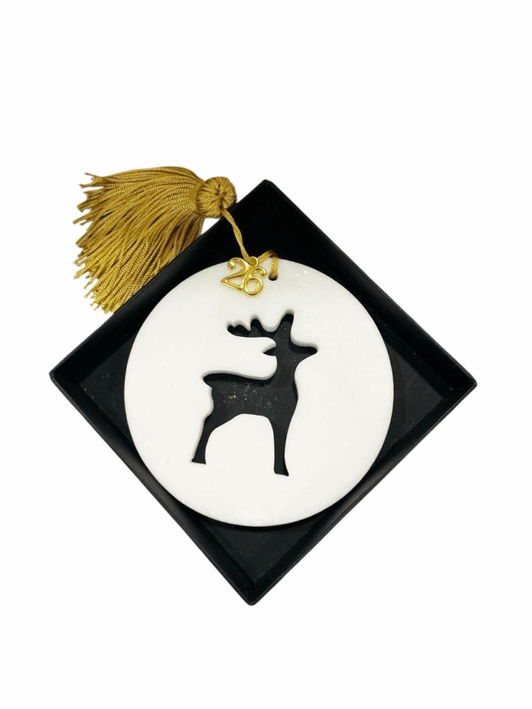 Μαρμάρινο διακοσμητικό ” Τάρανδος με γούρι του 26′ “