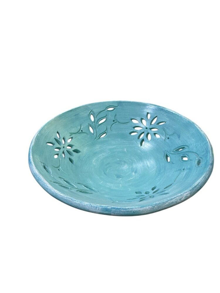 Πιατέλα μπλε τιρκουάζ με σχέδια άνθη 37 εκ